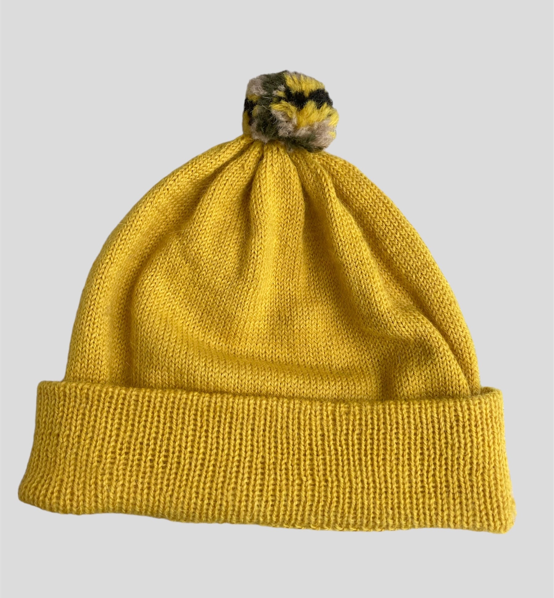 These new bobble hats are hand knitted using 100% pure alpaca wool. Designed to be worn with the rim folded up, so super warm over the ears or folded down for larger sizes. In a range of colours they come with a multi coloured pompom.