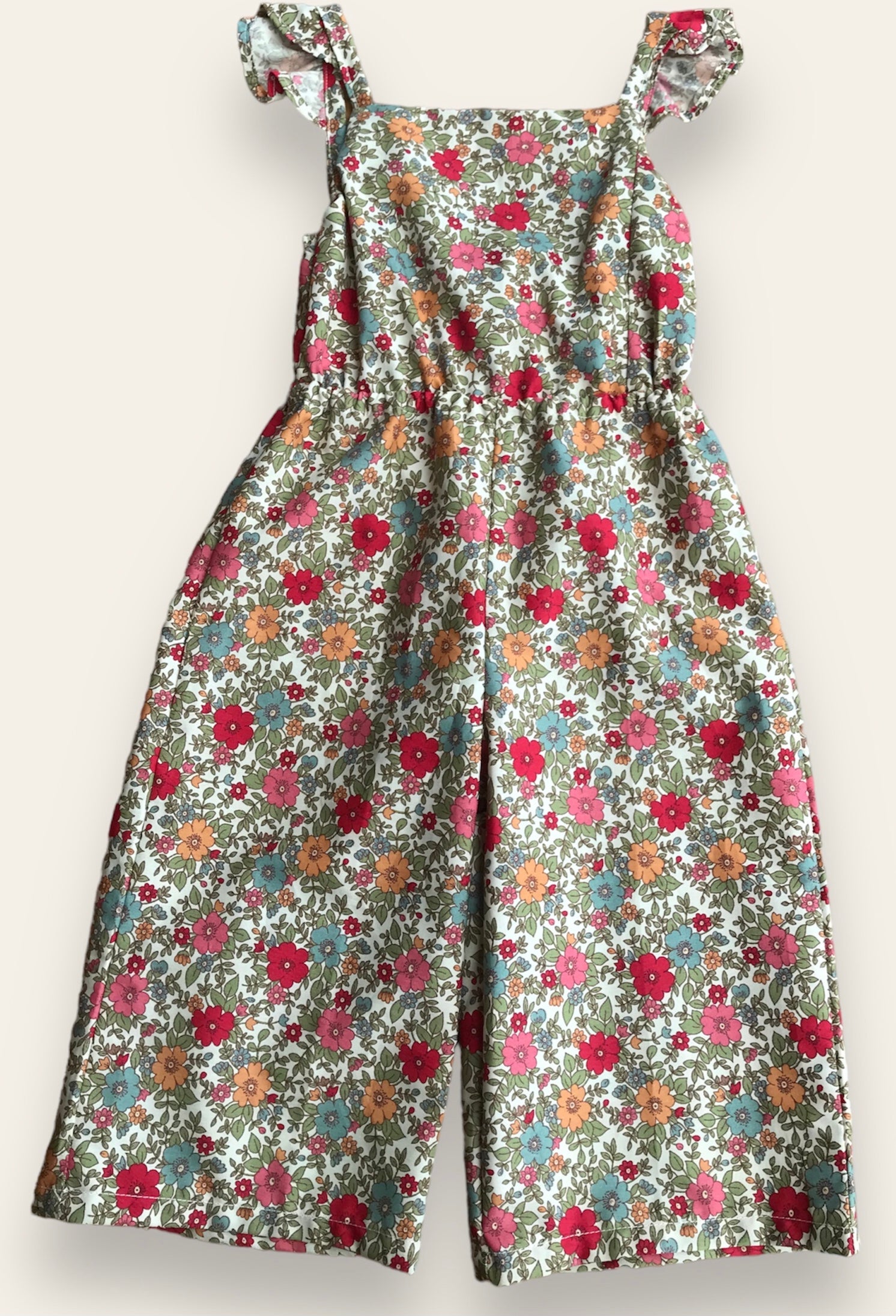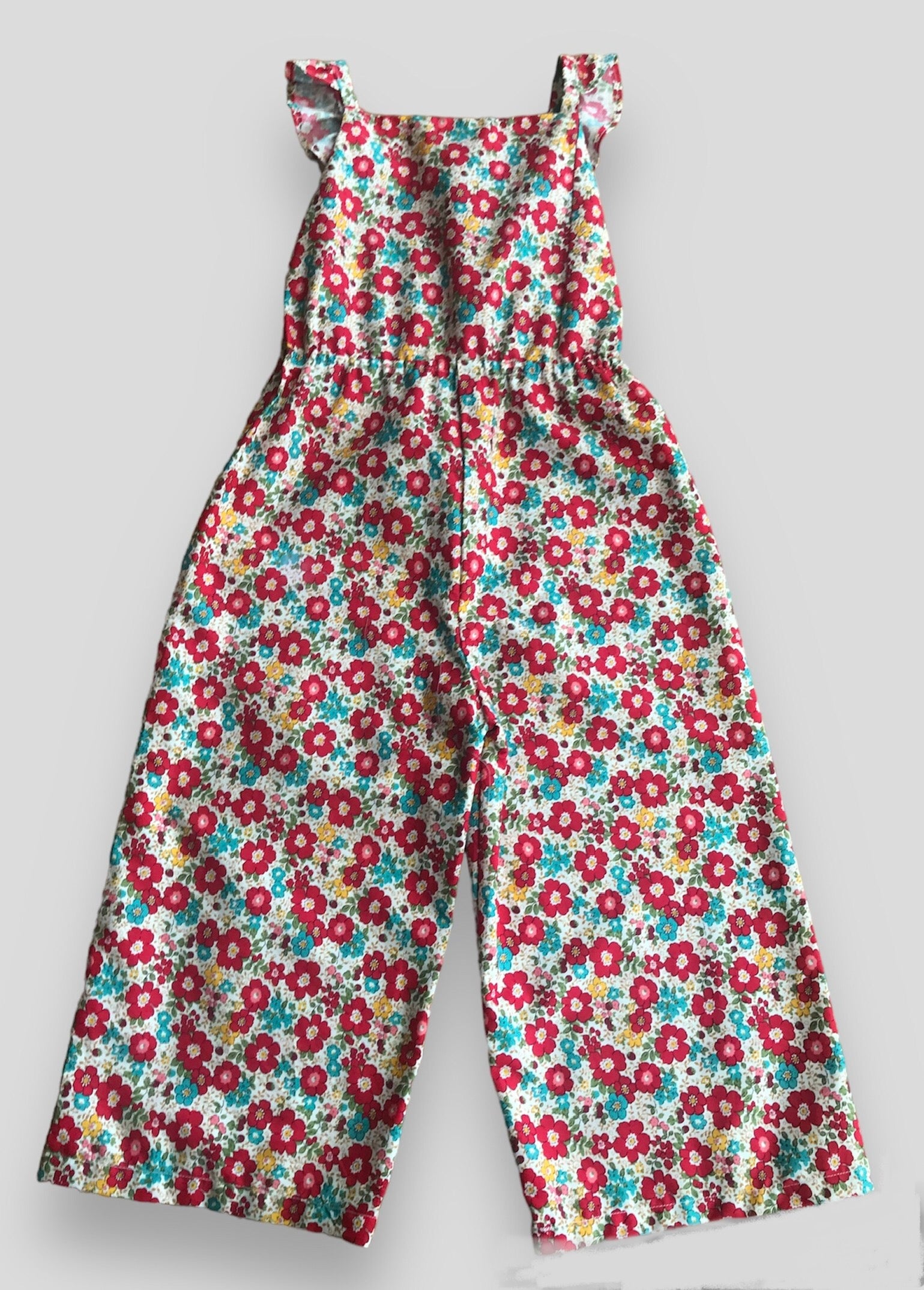 Lightweight 100% cotton jumpsuit in pretty floral fabric. Gathered loosely at the waist, perfect for summer days.