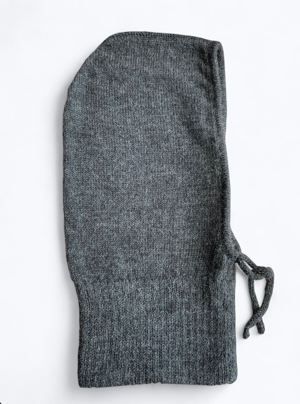 Balaclava hood hand knitted in 100% alpaca yarn. Super soft and warm for long winter walks on the beach or in the city.